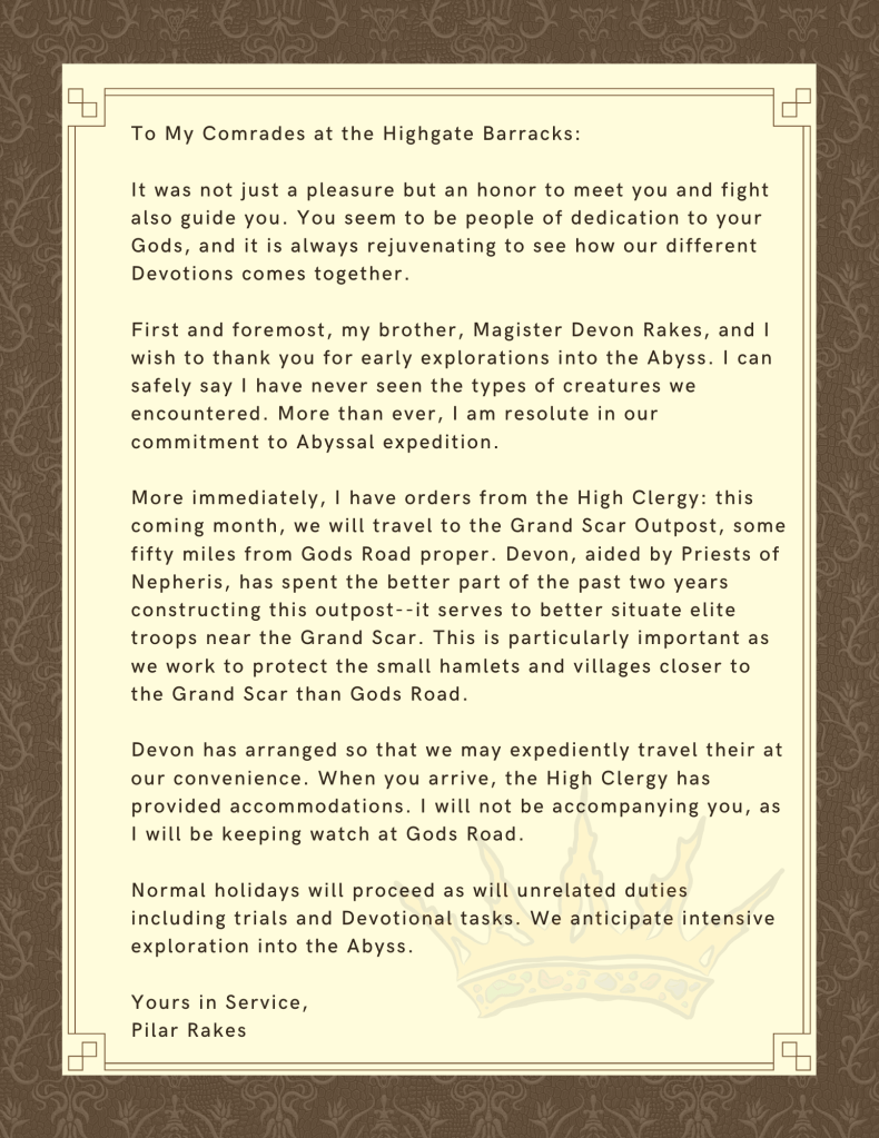 You can read more about Zar’zima here and T’heron here. They are also available on the Gods of Circadia page. As a note, you may choose to play a follower of T’heron. You may only pursue Zar’zima in-game, but her write-up and rules are public knowledge.
