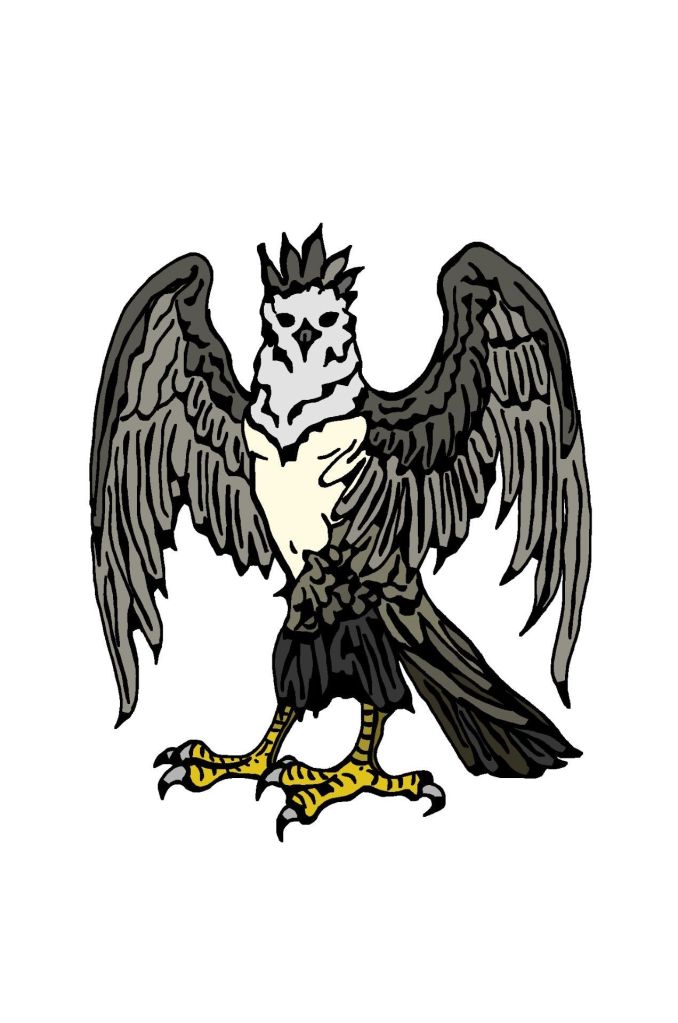 Symbols: a harpy eagle, a tattered and bloody white flag, a corpse on a battlefield, a rusted sword